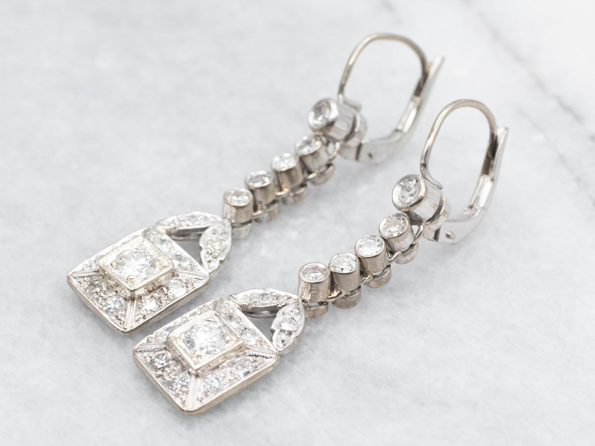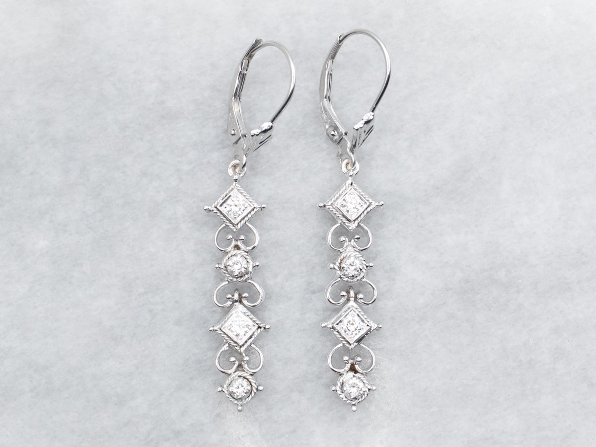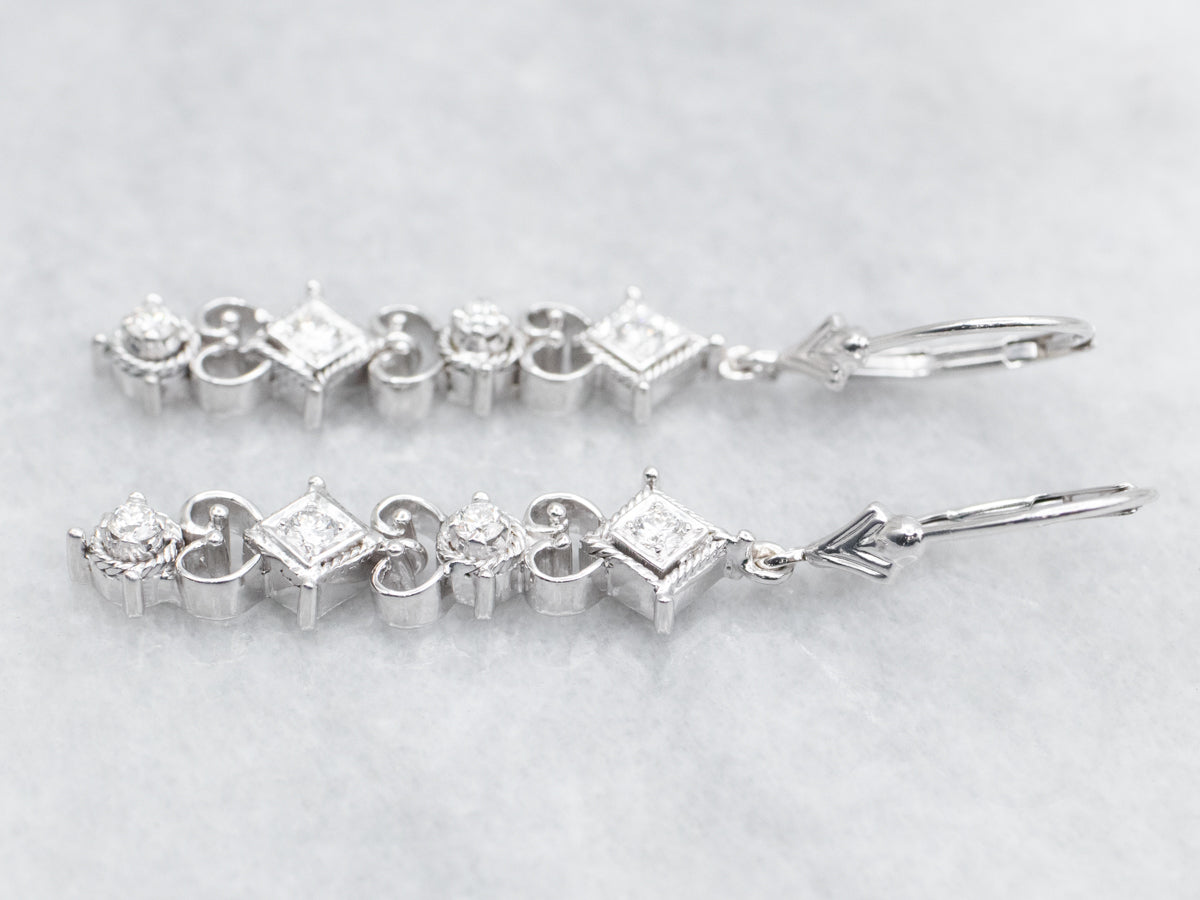 Aretes colgantes de diamantes en oro rosa con halo de diamantes