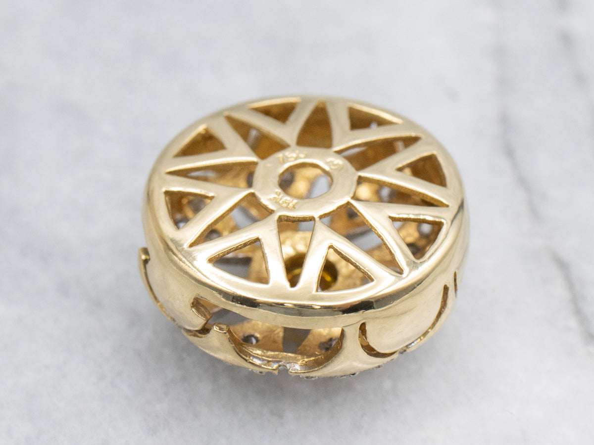 Elegant two-tone gold pendant featuring a round bezel-set enhanced yellow diamond. This refined slide design offers versatile styling, allowing you to wear it on your favorite chain for a polished, contemporary look that complements any occasion.