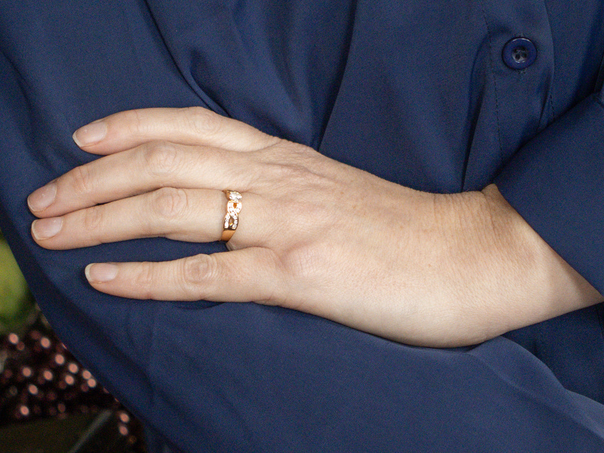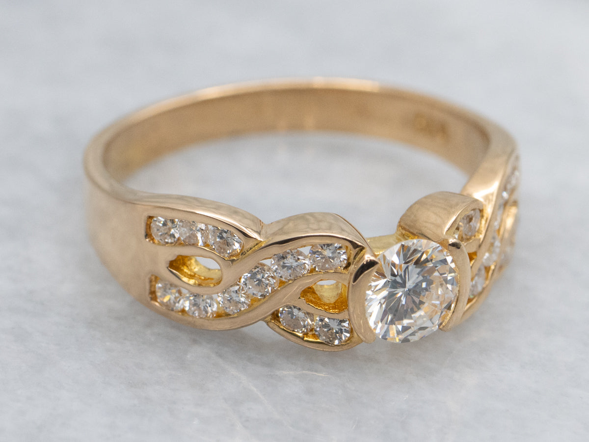 A dazzling dance of light and love, this engagement ring features a stunning round brilliant diamond set in a gracefully twisting band. The dynamic design captures movement and elegance, while the high-karat gold ensures lasting brilliance. Perfect for someone who wants their ring to be as unique and spirited as their love story.