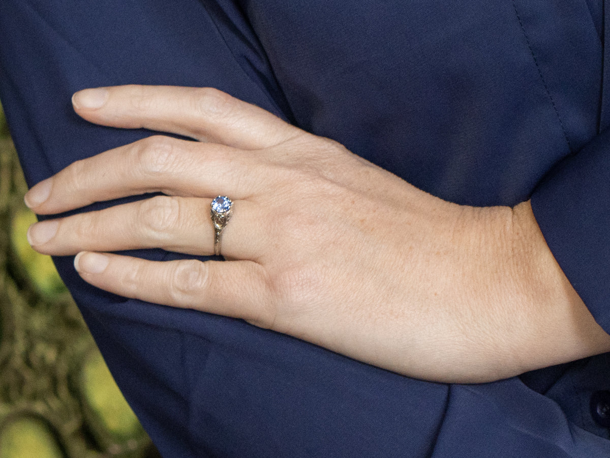 A timeless sapphire solitaire showcasing an elegant round-cut stone set in lustrous white gold. Delicate filigree detailing frames the center gem, reflecting the refined craftsmanship of the 1920s era. This vintage-inspired piece combines classic beauty with enduring sophistication, making it an exceptional choice for those who appreciate heirloom-quality jewelry with historical charm and distinctive character.