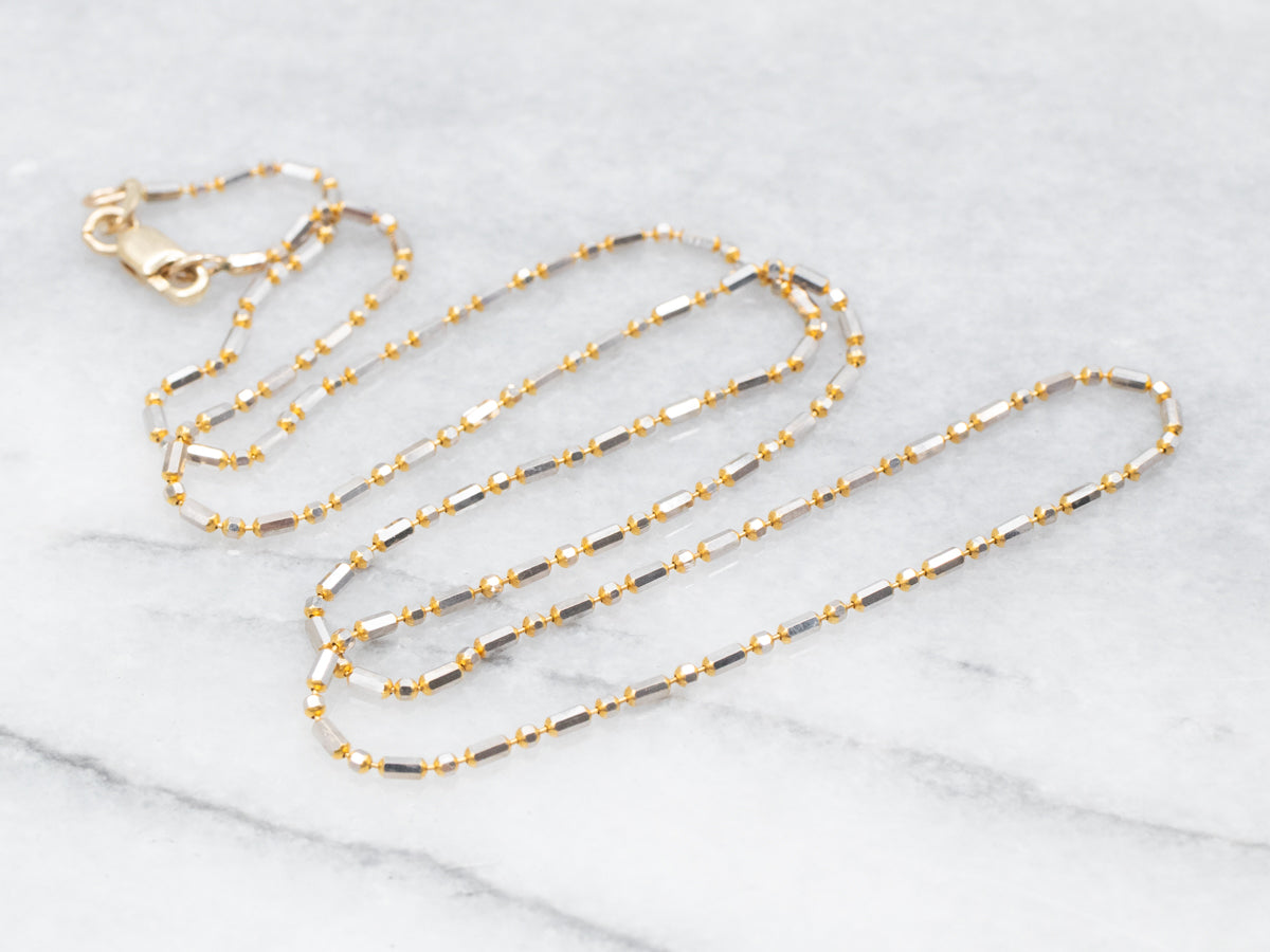 For a unique, eye-catching look, reach for this two-tone necklace. It features yellow gold tubes along with yellow and white gold beads, combining textures for a unique look. Its quality construction ensures your piece will last.