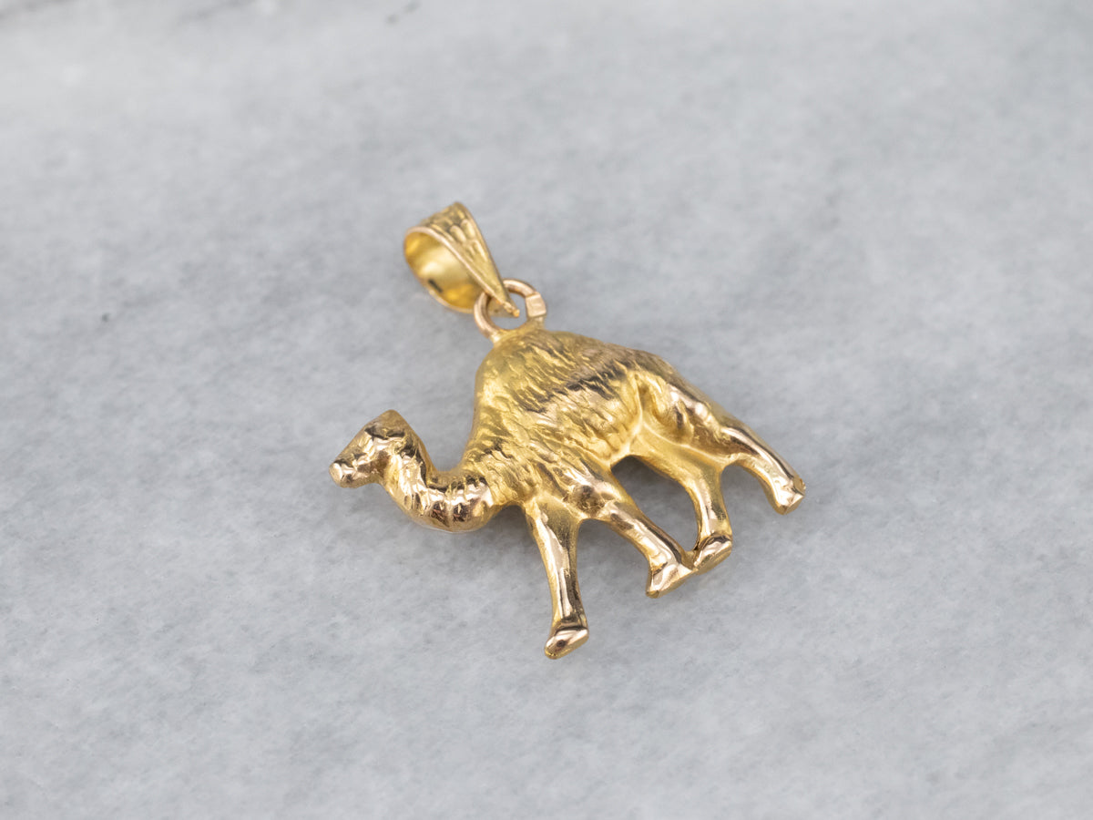 This little camel charm is crafted from 18 karat gold and features a curly texture that makes it quite lifelike! This charm evokes Egyptian landscapes and deserts and is perfect for any travel lover.