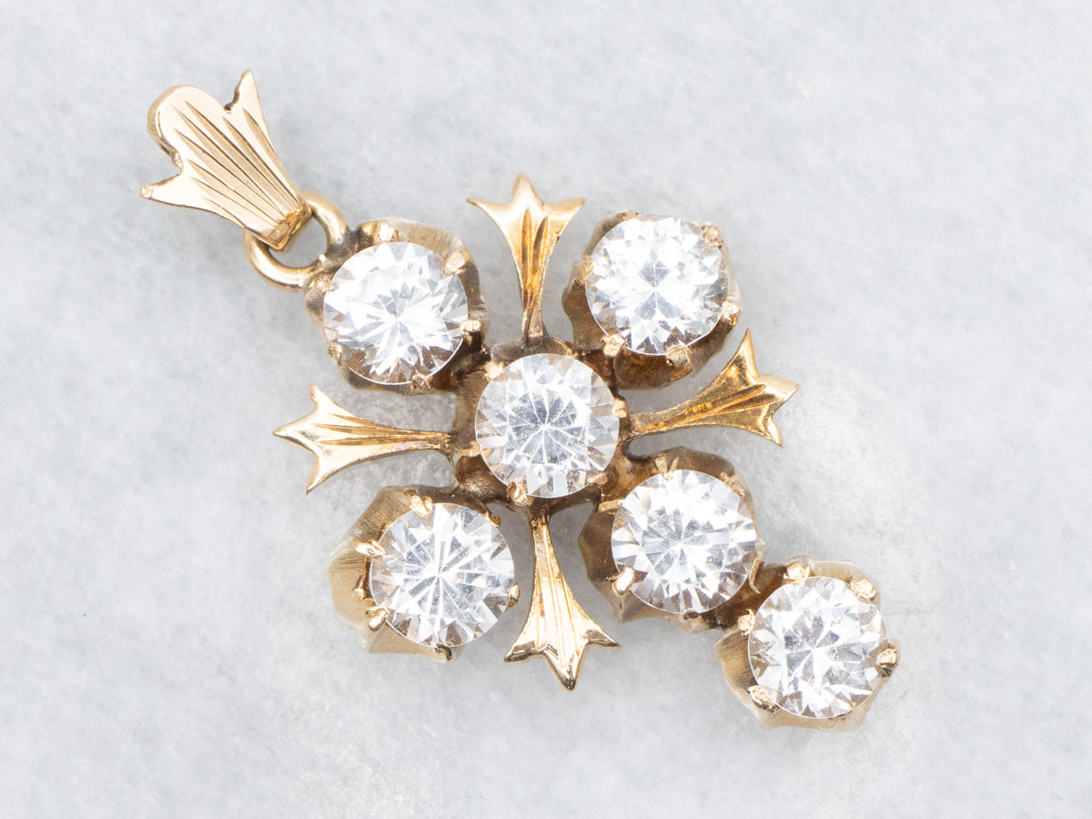 Vintage Ornate Synthetic Spinel Cross Pendant
