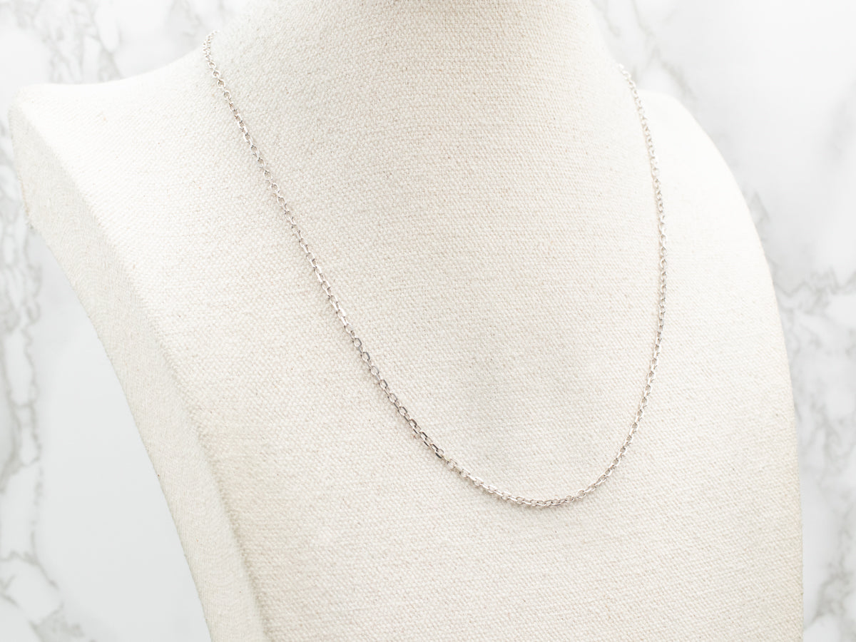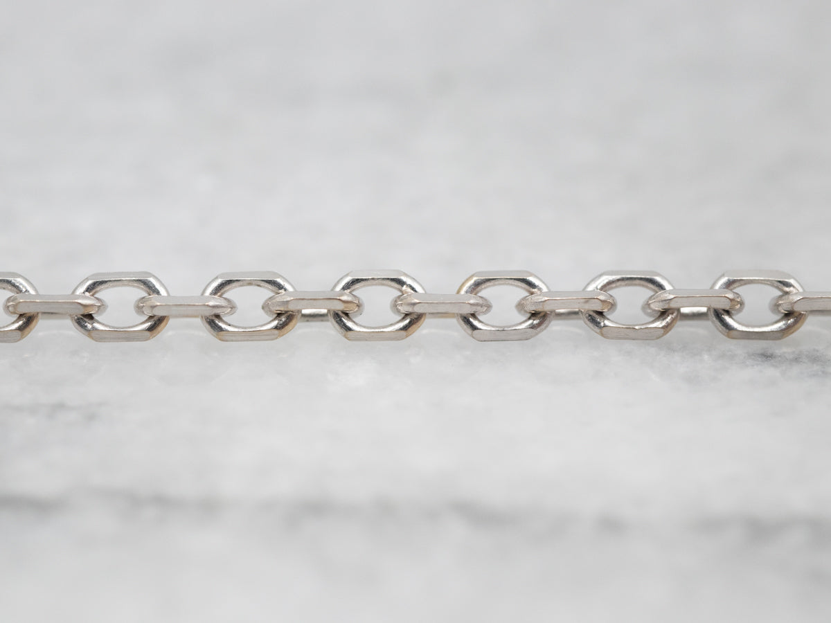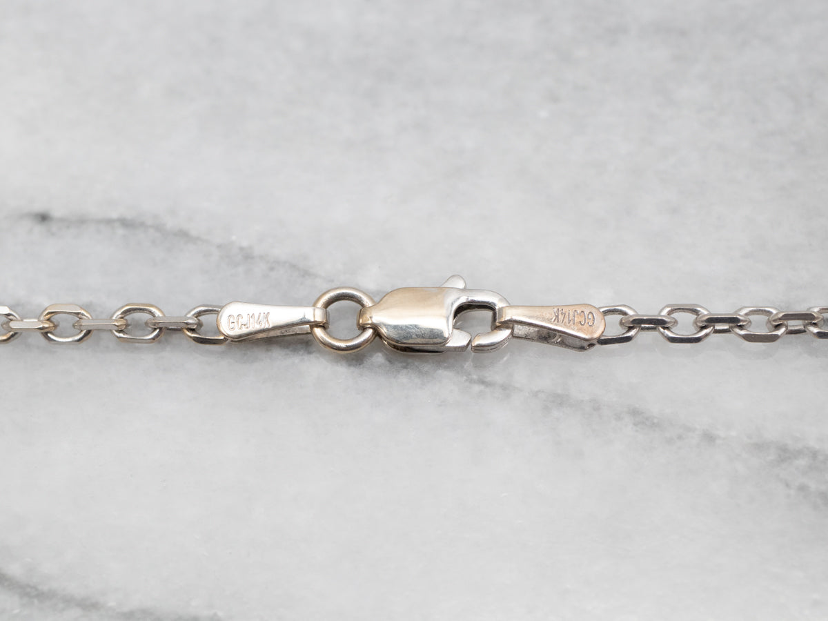 This classic cable chain necklace is finished with a secure lobster clasp, perfect for everyday wear. The white gold provides an elegant and timeless look that will never go out of style.