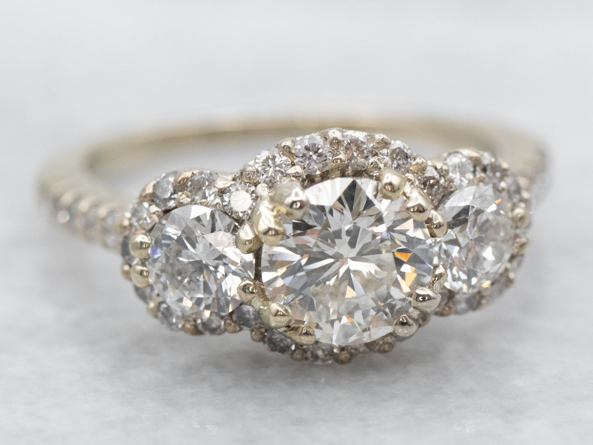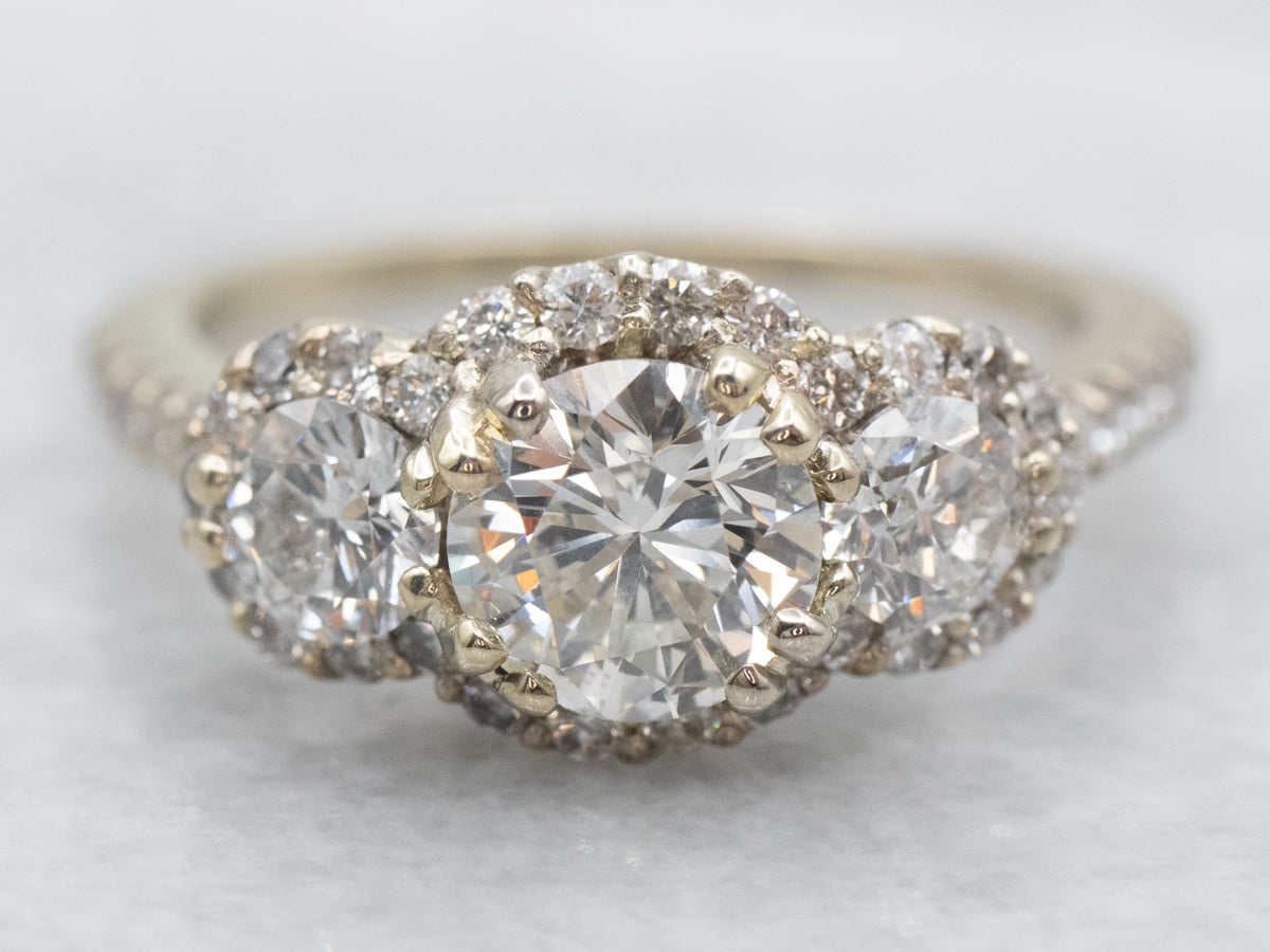 Modern Gold Diamond Engagement Ring with Diamond Halo and Diamond Shoulders