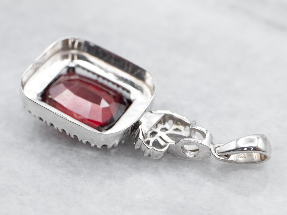 We've set this classic halo pendant with a rare, color-changing garnet that exhibits colors and properties similar to alexandrite! This deeply colored stone sparkles with hues of turquoise and purple, depending on the light. A wreath of sparkling diamonds provides a lovely frame for this special stone.
