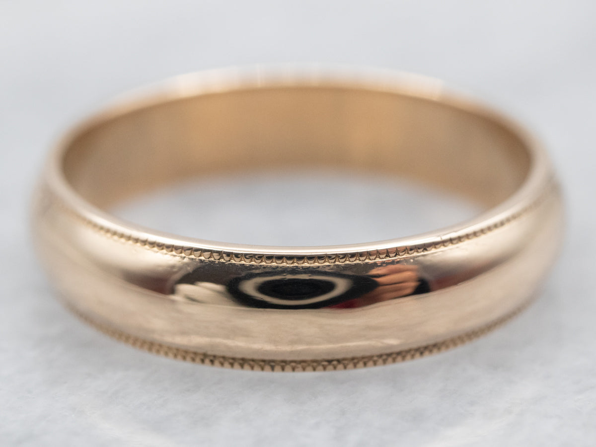 This classic white gold wedding band is ideal for sophisticated occasions. Its milgrain edge offers a subtle textured design that adds a timeless touch of elegance to the ring. Wear this classic white gold band for a modern, yet timeless style.