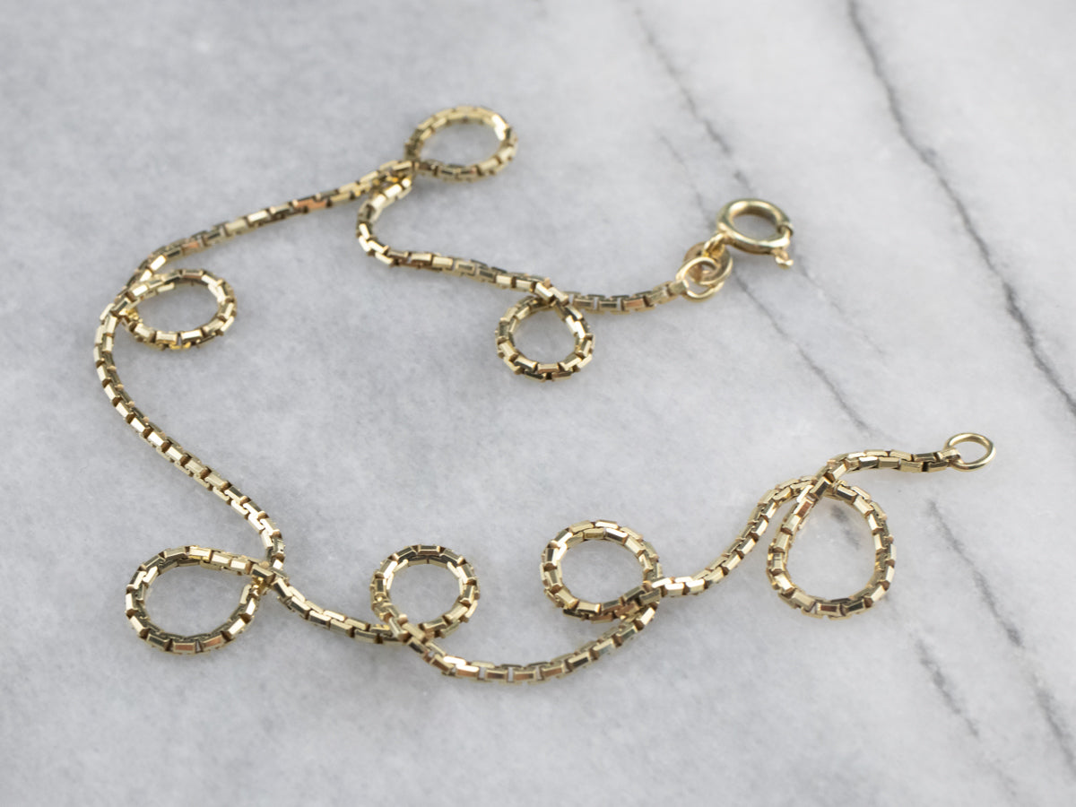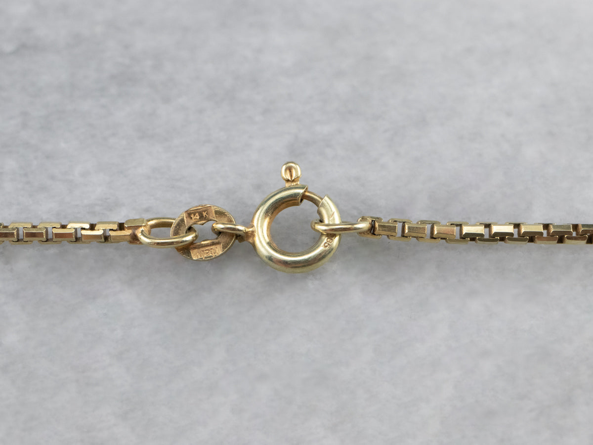 This classic box chain necklace is crafted from highly polished gold. Each link creates a fluid play of light that almost seems to sparkle when worn. This is a versatile piece that would look lovely worn alone or strung with a pendant.