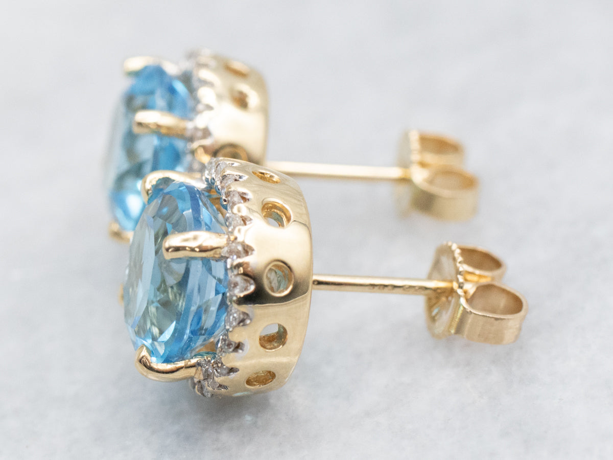Elaborados con oro amarillo, estos aretes presentan impresionantes piedras de topacio azul de talla redonda. Realza cualquier conjunto con el color vibrante y la elegancia atemporal de estos aretes. ¡Perfectos para cualquier ocasión, son una hermosa adición a cualquier colección de joyas!
