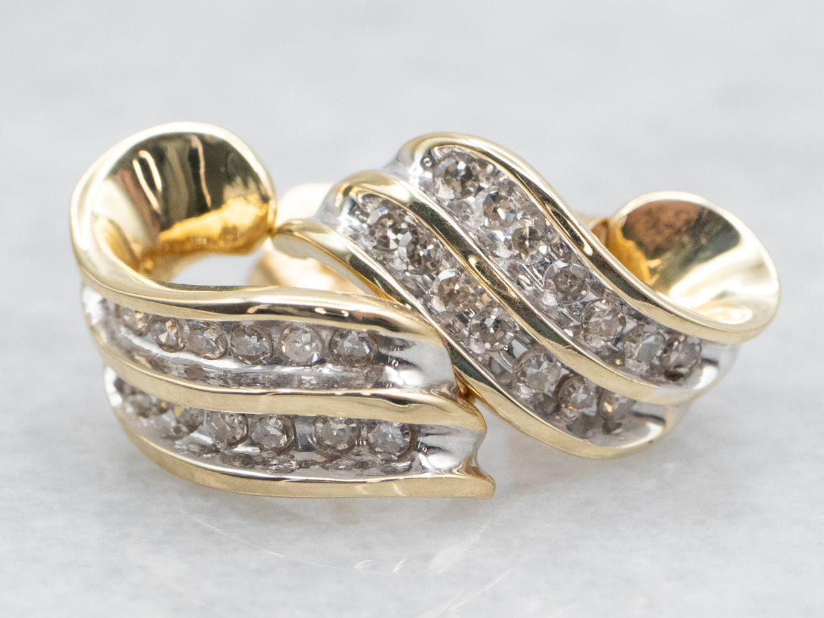 Añade un toque de brillo con estos elegantes pendientes colgantes. Elaborados con diamantes de talla redonda y baguette, aportan un toque de diversión y elegancia a cualquier outfit. Perfecto para cualquier ocasión, ¡no te pierdas estos deslumbrantes accesorios!