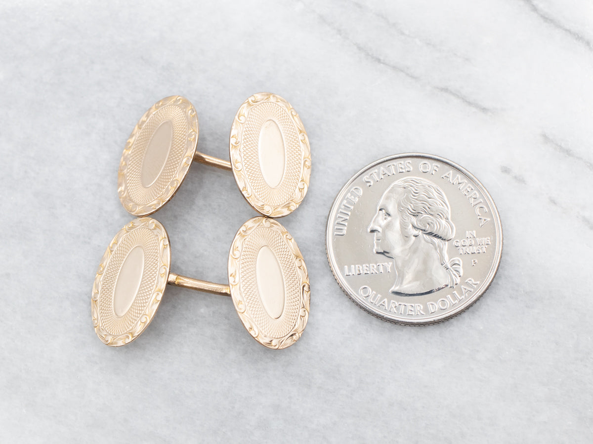 Estos gemelos son la forma perfecta de añadir un toque sutil y sofisticado a cualquier conjunto. Elaborados en oro amarillo y grabados con patrones intrincados, estos gemelos irradian una elegancia atemporal. Un complemento ideal para cualquier caballero sofisticado.