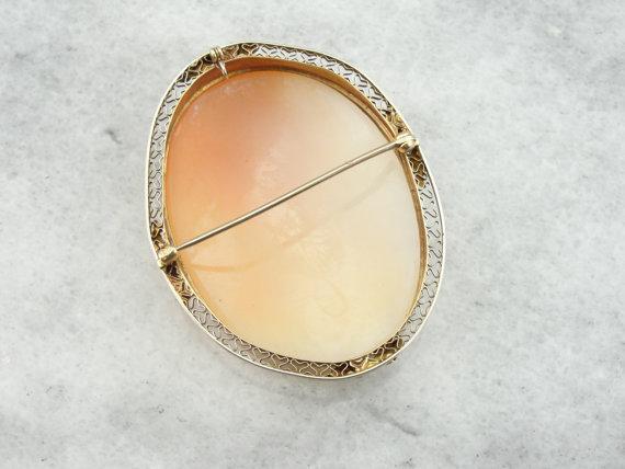 Camafeo, colgante o alfiler Art Déco de filigrana de oro amarillo