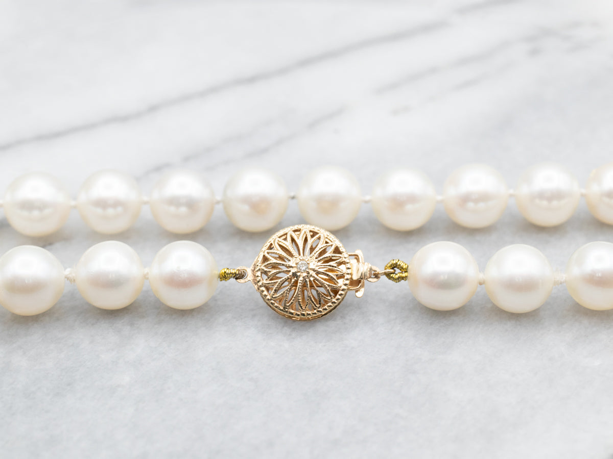 Indulge in the understated elegance of this necklace. The graduated white coral beads are perfectly accented by the lustrous yellow gold clasp. Elevate any outfit with this sophisticated and exclusive piece that exudes a sense of refined taste and style.