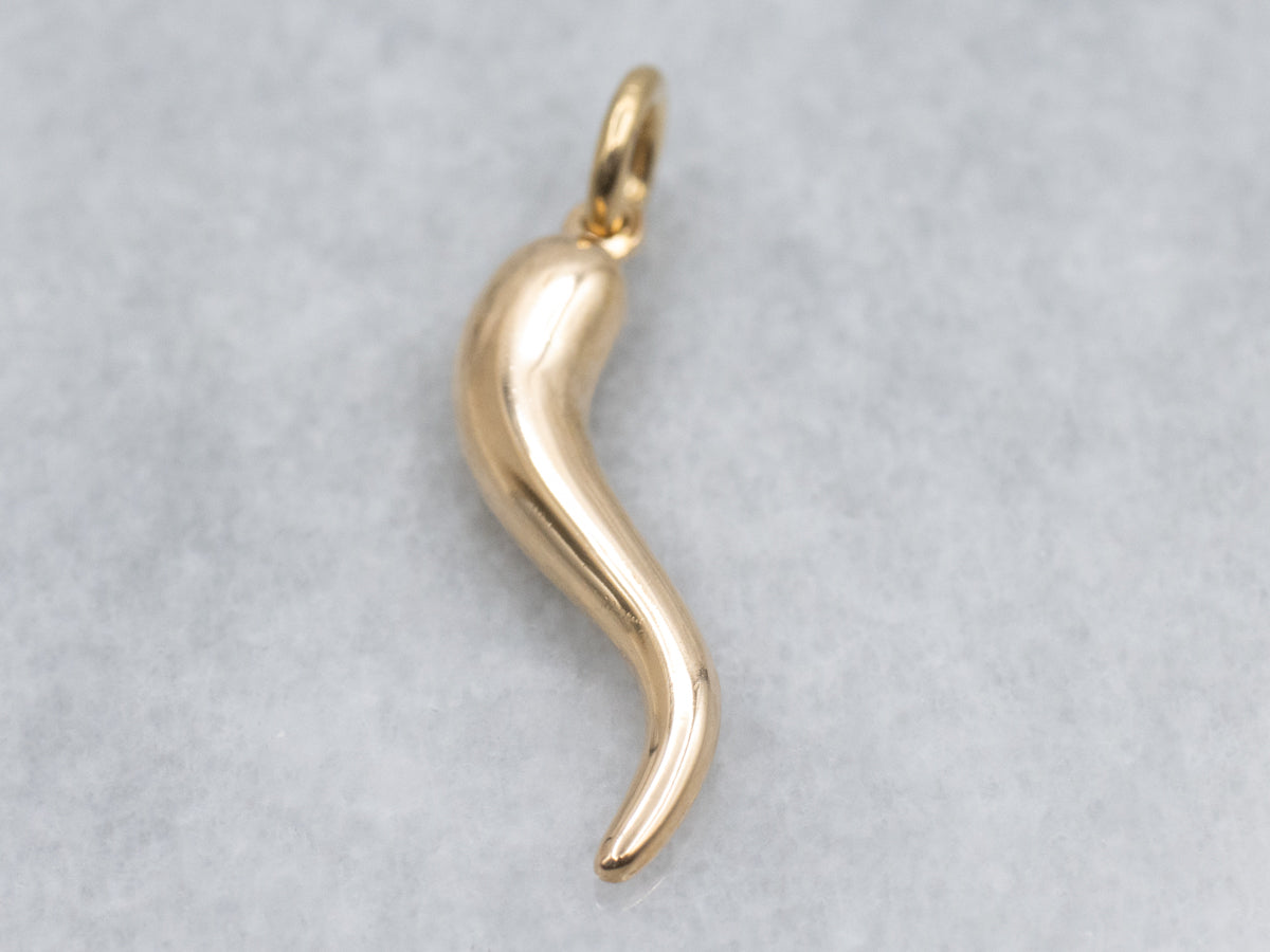 This yellow gold cornicello is a time-honored Italian talisman believed to ward off negative energy and attract good fortune, fertility, and prosperity. With roots in pre-Roman tradition and connections to lunar symbolism, it serves as both a personal protective charm and a meaningful expression of cultural heritage.