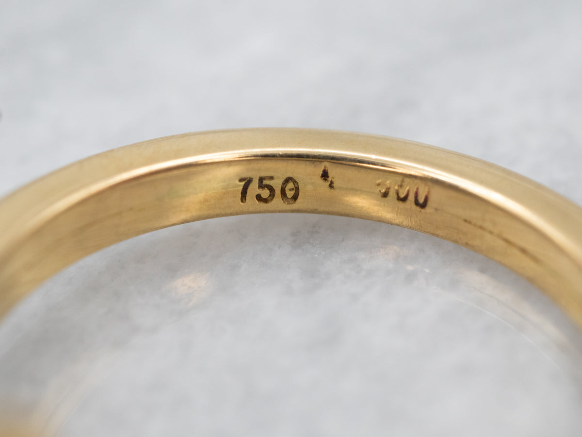 ¡Este excepcional granate tsavorita recibió cierta atención cuando pasó por nuestras oficinas! Perfectamente sombreada con reflejos de verde hierba y destellos de lima, ¡esta piedra preciosa es excepcional! Hemos engarzado esta gema en un engaste bien equilibrado de oro amarillo de 18 quilates que forma un marco simple pero efectivo, amenizado con detalles de diamantes y platino.