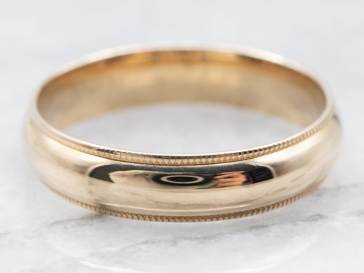 Esta elegante banda presenta un borde milgrain doble, que agrega un toque de detalles intrincados a su diseño clásico. ¡Confeccionada en oro amarillo de 14 quilates, esta alianza ofrece un estilo atemporal y sofisticado para su día especial!
