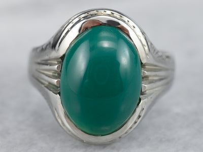 Metal: 10K White Gold Gem: Green Onyx Gem Measurements: 13.4 x 10.0 mm, Oval Ring Size: 8.25 Marks: “10K” Stamped on the inside band