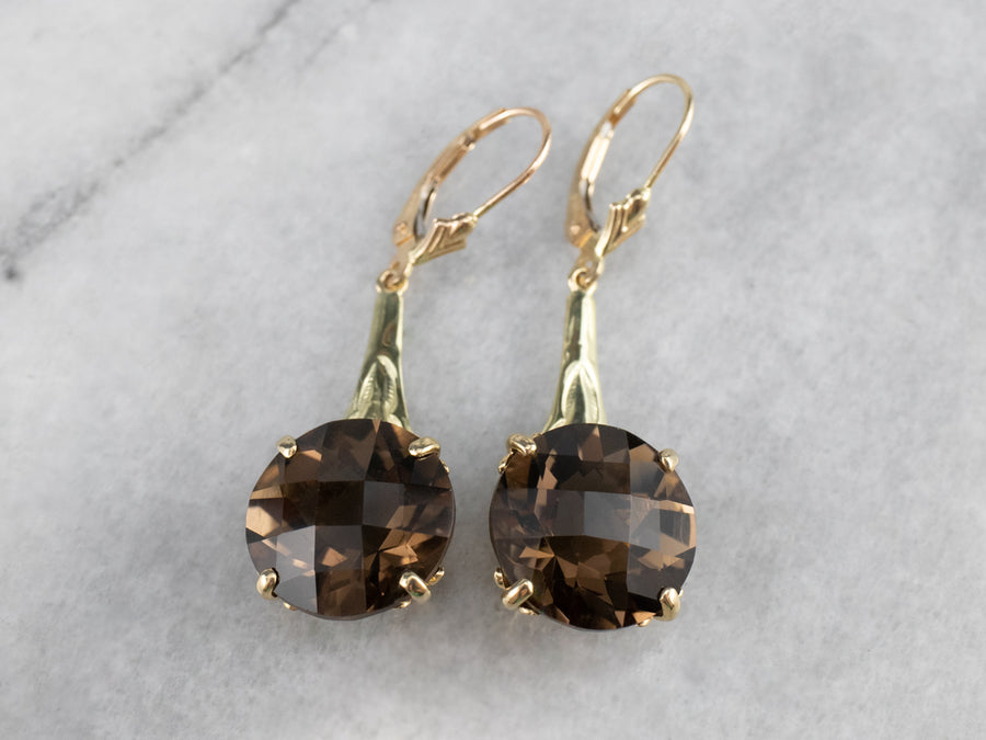Metal: 10K Yellow Gold Gem: Smokey Quartz 14.50 Carats Gem Measurements: 16.4 x 14.2 mm, Emerald Cut Ring Size: 7.75 Marks: “10K” Stamped on the inside band