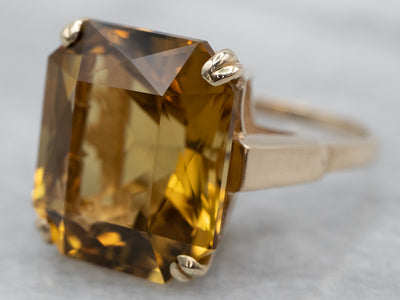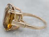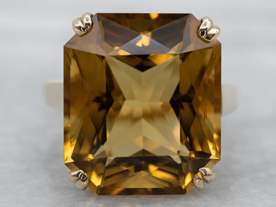 This is a classic piece from the 1970s! The split prongs and openwork style setting bring a wonderful sense of light and movement to the bright golden smokey quartz that we've set at the center! This big, bold, and color-filled stone is sure to be a conversation starter!