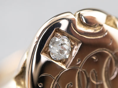 Unisex Victorian Gold and Diamond "JJT" Monogramed Signet Ring