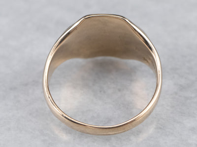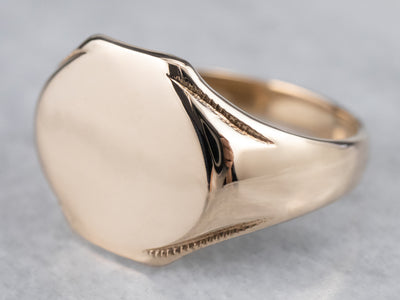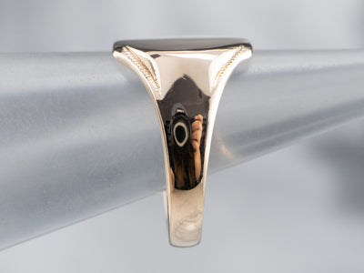 This signet ring has a minimalist flair! The sleek and simple design is subtly accented by beaded engraving along the side, adding just a touch of visual interest. Classic and versatile in style, this signet ring would make a great gift!