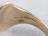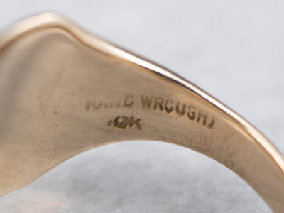 Metal: 10K Yellow Gold Top Measurements: 15 x 13 mm, Oval Ring Size: 8 Marks: “HANDWROUGHT 10K” Stamped on the inside band