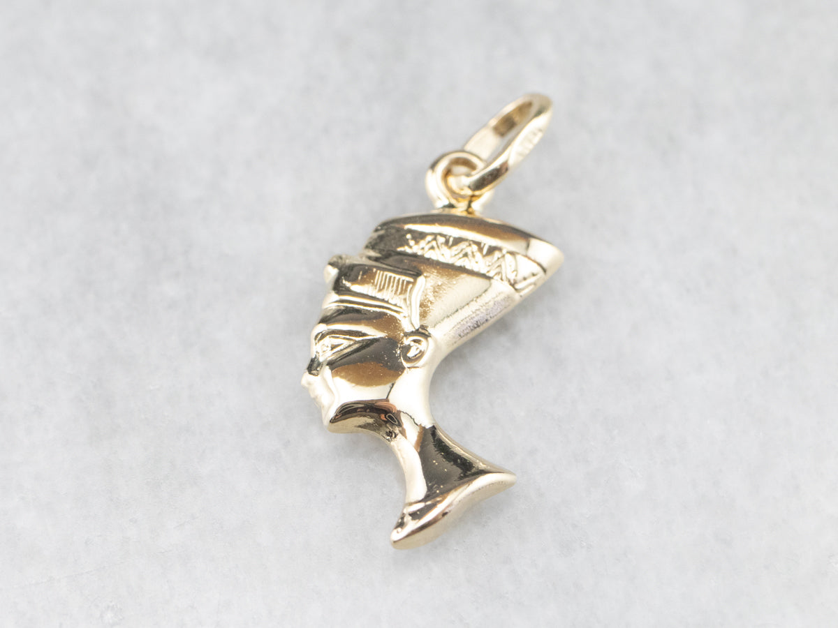 This Nefertiti pendant has fine detail and a beautiful polish! Made of 14 karat gold, this piece can be worn as a pendant on a chain or a charm on a bracelet. Channel your inner queen with this classic pendant!