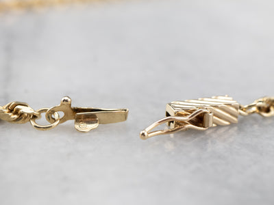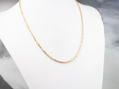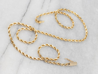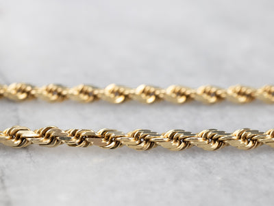 This rope chain has a nice weight to it, not too light and not too heavy! Made of 14 karat gold, this necklace has enough presence on the neck to wear as is, but could also be strung with a pendant.