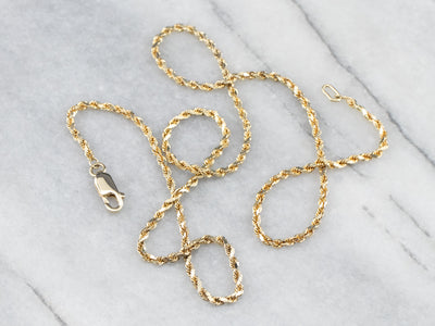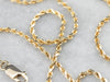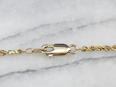 This rope chain has a hammered finish that sparkles in the light! Made of 14 karat gold, this necklace has a nice presence around the neck and could be worn on its own.