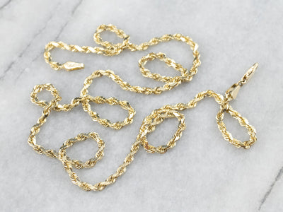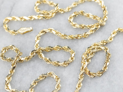 This rope chain has a hammered finish that sparkles in the light! Made of 14 karat gold, this necklace has a nice presence around the neck and could be worn on its own.