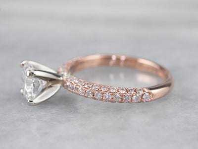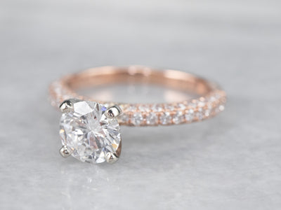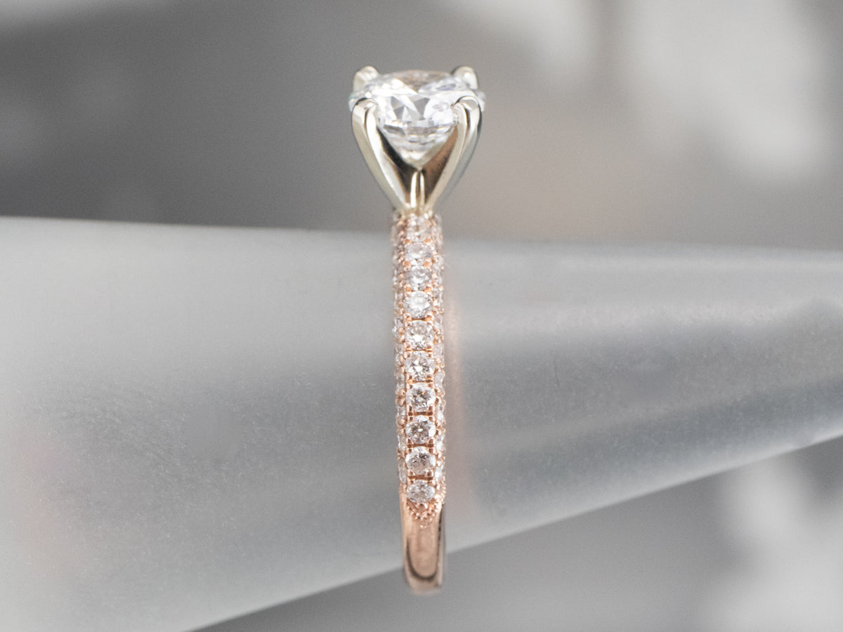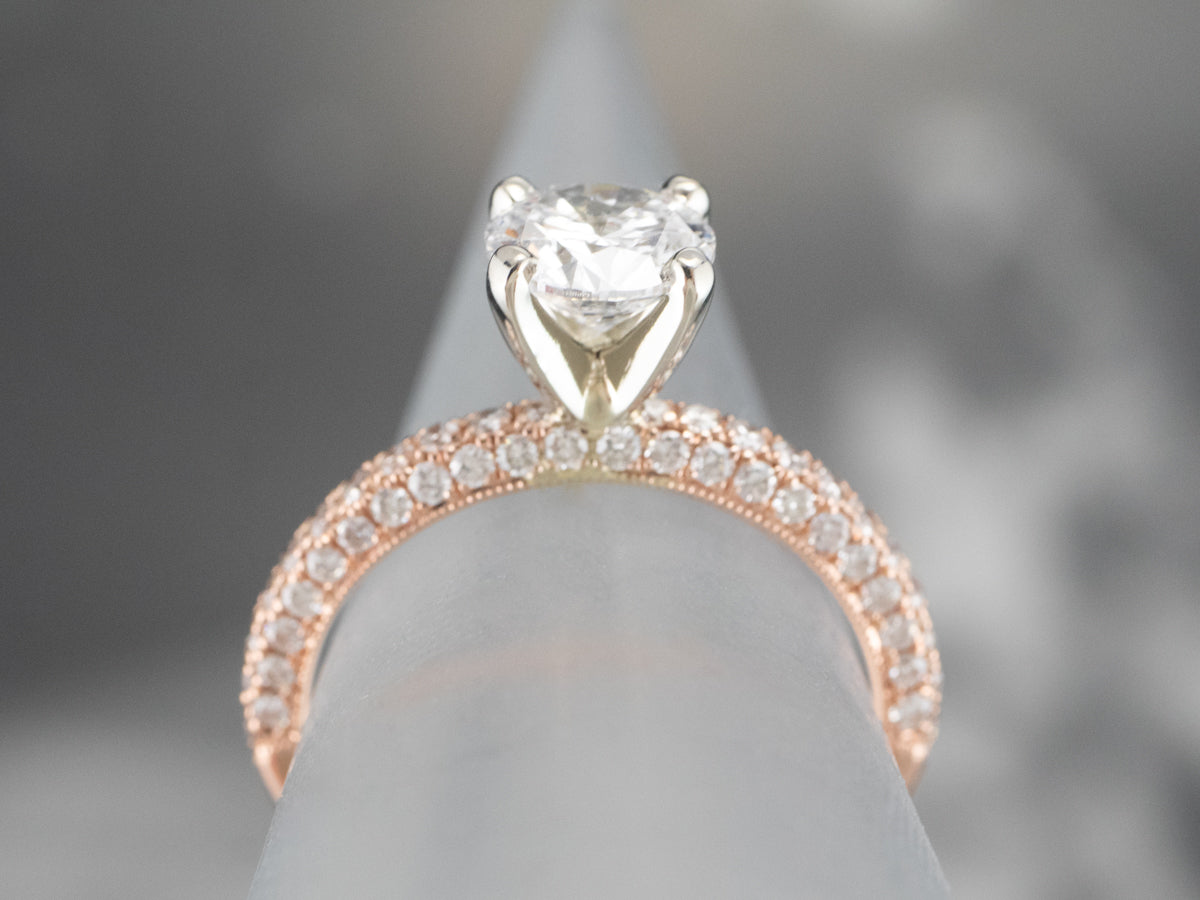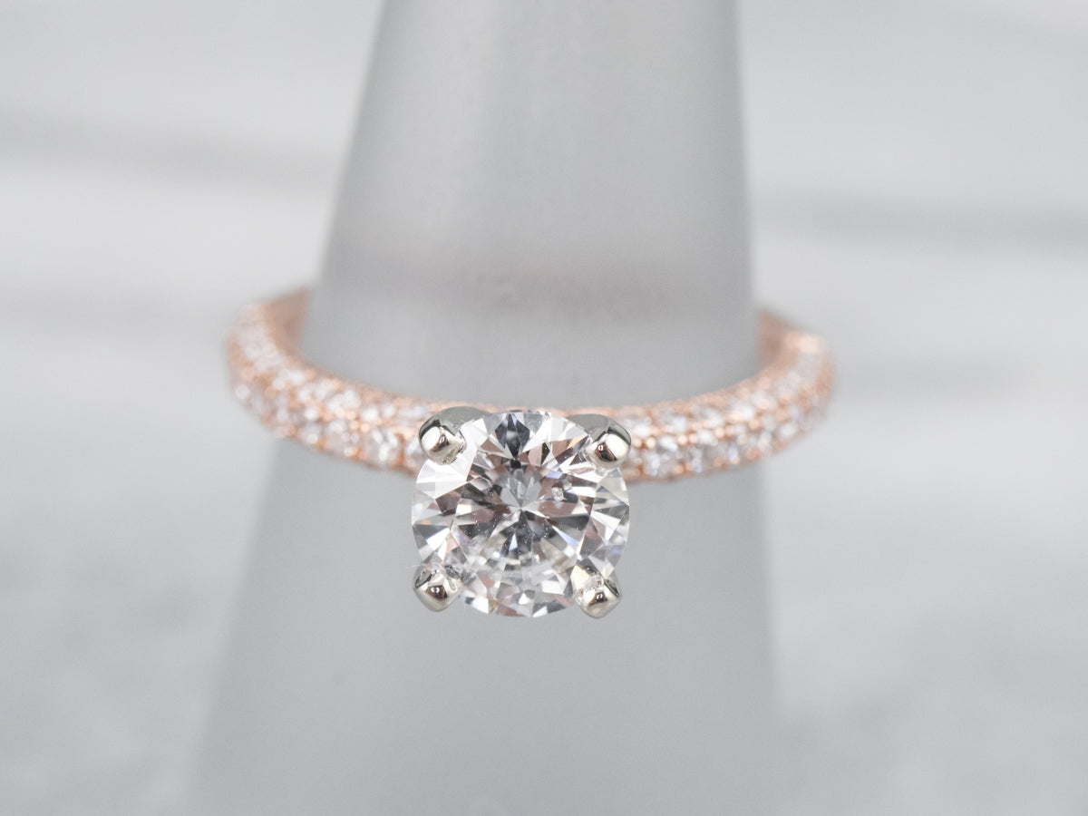 Metal: 14K Rose and White Gold Gem: Diamond 1.02 Carats, D in Color, SI2 in Clarity Gem Measurements: 6.5 mm, Round Accents: 66 Round Diamonds, .45 Carats, F in Color, VS in Clarity Ring Size: 6 Marks: “14K Neil Lane” Stamped on the inside band GIA Report Number: 219********