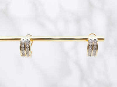 Metal: 14K Yellow Gold Gem: 28 Diamonds totaling .53 Carats, SI in Clarity, G-I in Color Gem Measurements: 1.4 mm, Round Earrings Length: 16 mm Earrings Width: 8 mm Marks: “14K” Stamped on the Findings