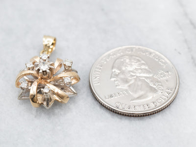 This vintage pendant has so much style and elegance, with a unique design that's classic of the Retro era. This pendant features bright, high-quality diamonds in a swirling, continuous pattern. Crafted of high 14-karat yellow and white gold, this pendant is sure to become a favorite heirloom.
