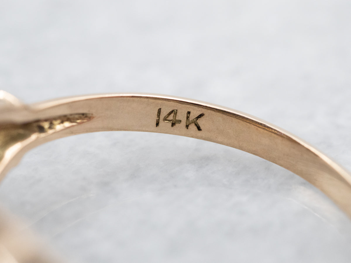 Metal: 14K Yellow and White Gold Gem: Diamond totaling .83 Carats, I1 in Clarity, I in Color Gem Measurements: 6.2 mm, Round Accents: 4 Diamonds totaling .15 Carats, SI in Clarity, I in Color Ring Size: 6.75 Marks: “14K” Stamped on the inside band