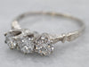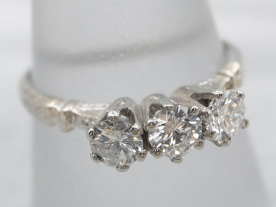 Metal: 14K White Gold Gem: 3 Diamonds totaling .71 Carats, SI2 in Clarity, G in Color Gem Measurements: 3.9 mm, Round Ring Size: 6.75 Marks: “14K” Stamped on the inside band