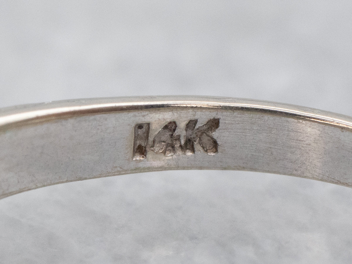 Metal: 14K White Gold Gem: 3 Diamonds totaling .71 Carats, SI2 in Clarity, G in Color Gem Measurements: 3.9 mm, Round Ring Size: 6.75 Marks: “14K” Stamped on the inside band