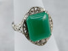 Metal: 14K White Gold Gem: Green Onyx Gem Measurements: 12.0 x 10.2 mm, Cushion Cut Ring Size: 7.25 Marks: “14K” Stamped on the inside band