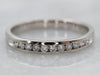 Absolutely lovely, this classy wedding band is crafted in polished, gleaming white gold, giving it an architectural feel. Bright diamonds give a line of glittering light on the finger. This will look well with a variety of engagement rings!