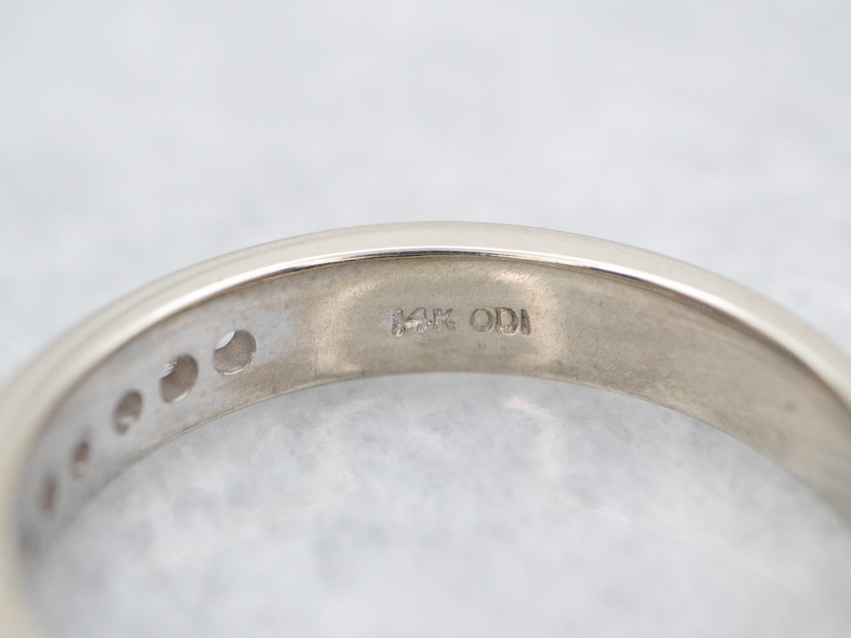 Metal: 14K White Gold Gem: 12 Diamonds totaling .30 Carats, SI2 in Clarity, H in Color Width of Band: 3.5 mm Height off Finger: 1.7 mm Ring Size: 5.75 Marks: “14K ODI” Stamped on the inside band