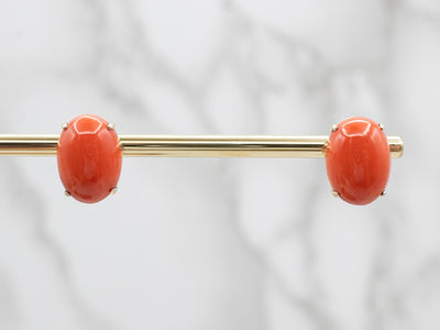 Metal: 14K White Gold Gem: 2 Coral Gem Measurements: 15.1 x 10.8 mm, Oval Earrings Length: 15 mm Earrings Width: 11 mm Marks: “14K” Stamped on the Findings
