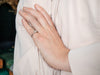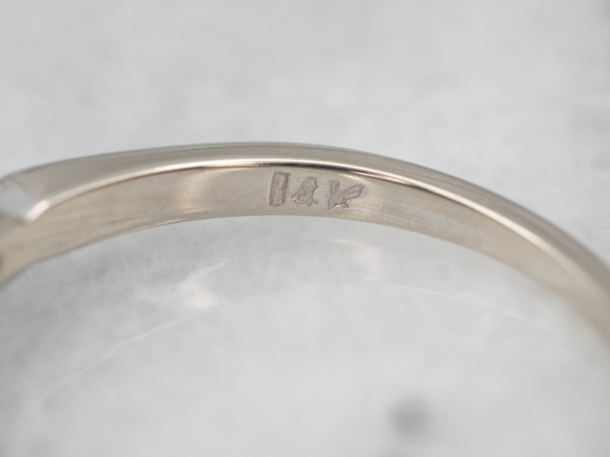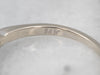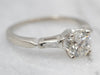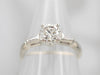 Metal: 14K White Gold Gem: Diamond totaling 1.03 Carats, VS2 in Clarity, J in Color Gem Measurements: 5.8 mm, Round Accents: 2 Diamonds totaling .08 Carats, VS in Clarity, G in Color Ring Size: 5.50 Marks: “14K” Stamped on the inside band
