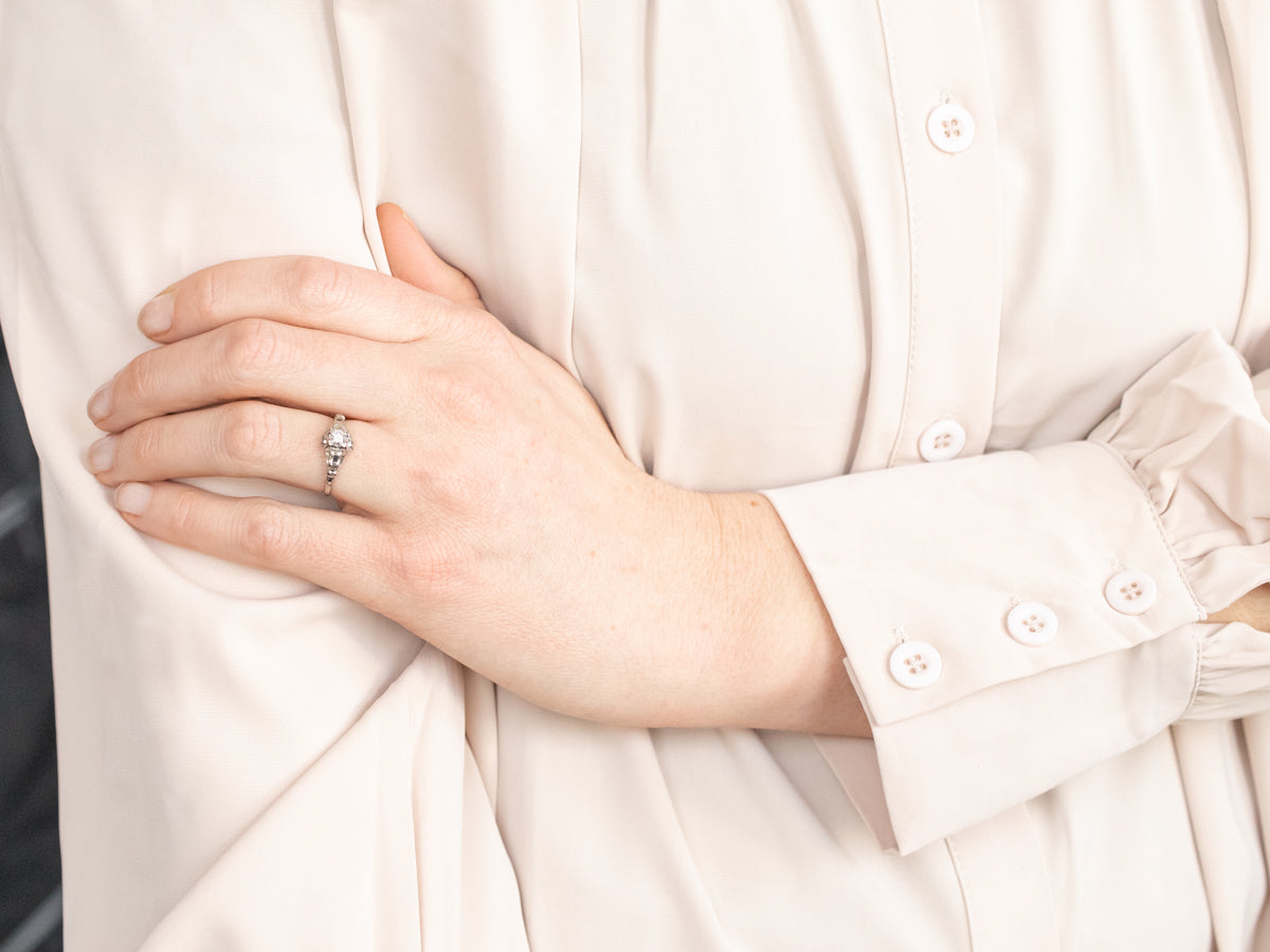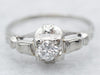 Crafted of highly polished white gold, the wonderfully proportioned, weighty mounting features a tapered knife-edge that brings an architectural feel to the ring. The glittering brilliant cut diamond is simply beautiful, with excellent cutting and a weight of .22 carats, a classic timeless engagement ring profile.