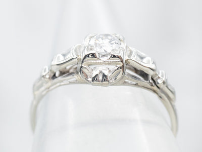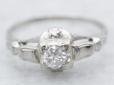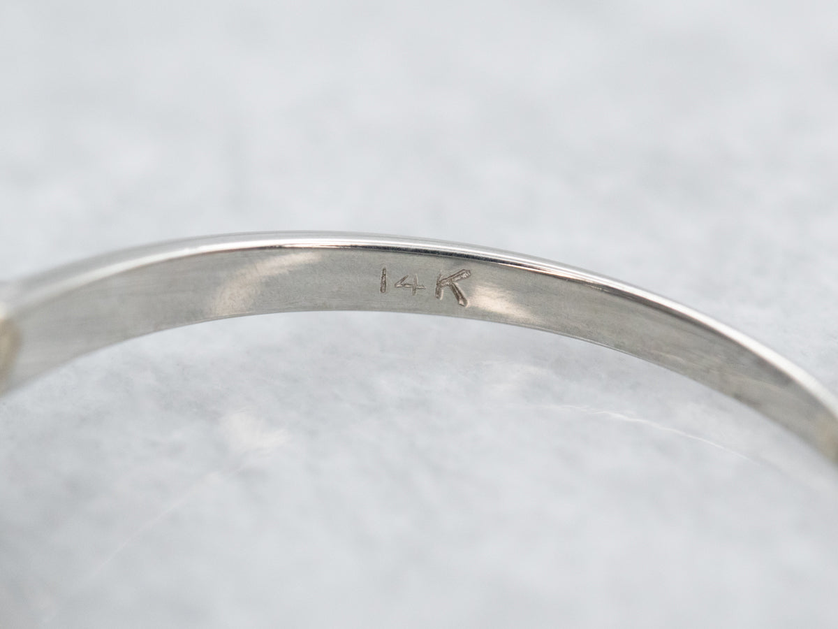 Metal: 14K White gold Gem: Diamond totaling .22 Carats SI2 in clarity, G in color Gem Measurements: 3.5 mm, round Ring Size: 6.0 Marks: "14K" Stamped on the inside band