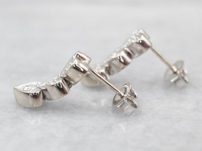 Metal: 14K White Gold Gem: 6 Diamonds totaling .14 Carats, VS-SI in Clarity, G-I in Color Gem Measurements: 1.8 mm, Round Earrings Length: 14 mm Earrings Width: 5 mm Marks: “14K” Stamped on the Findings
