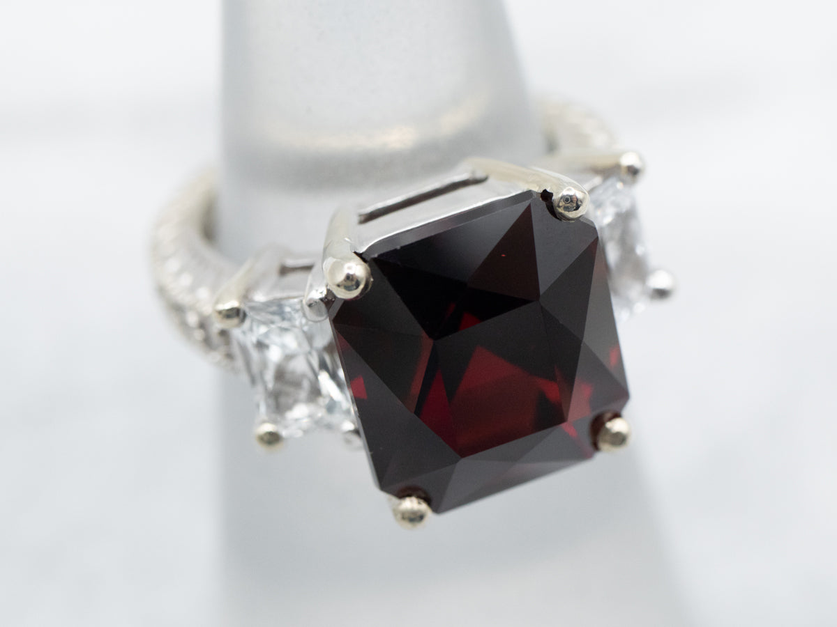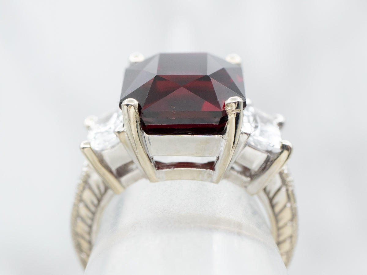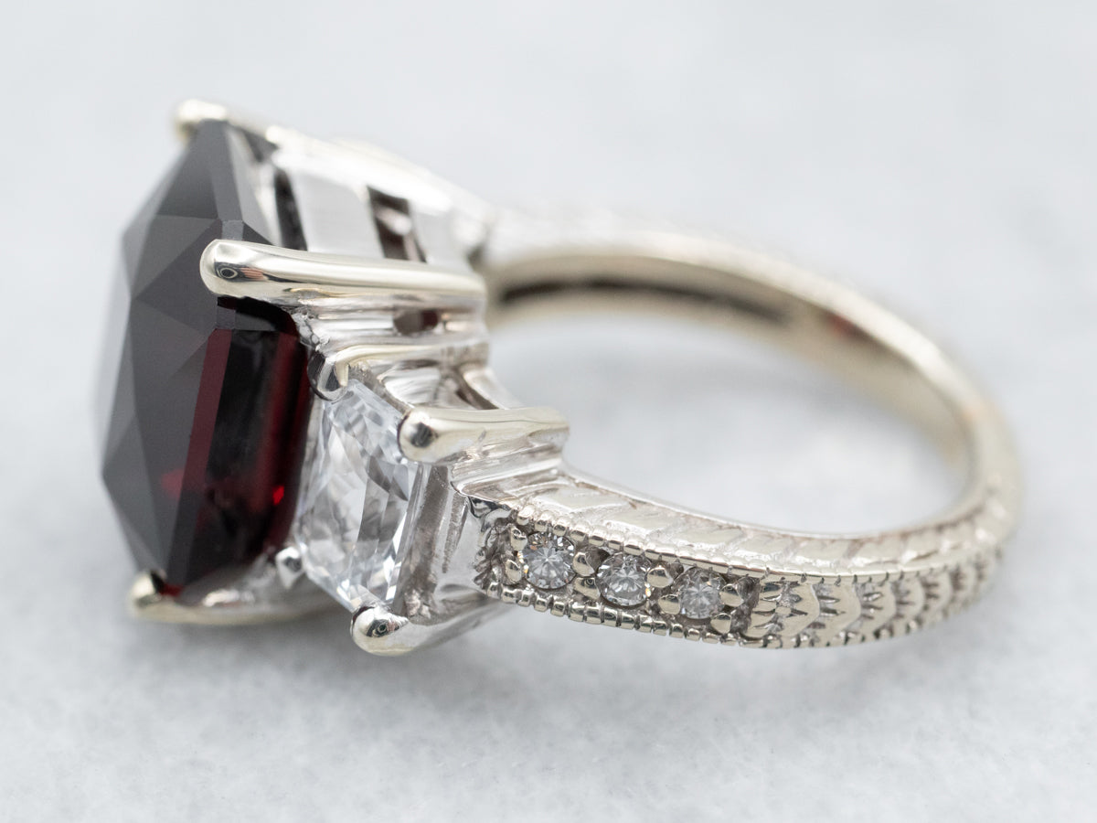Rich Emerald Cut Pyrope Garnet with White Sapphires and Diamond Accents