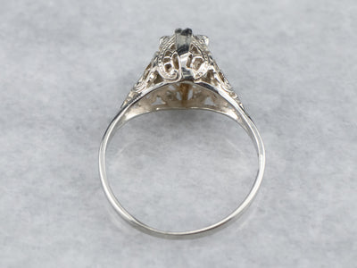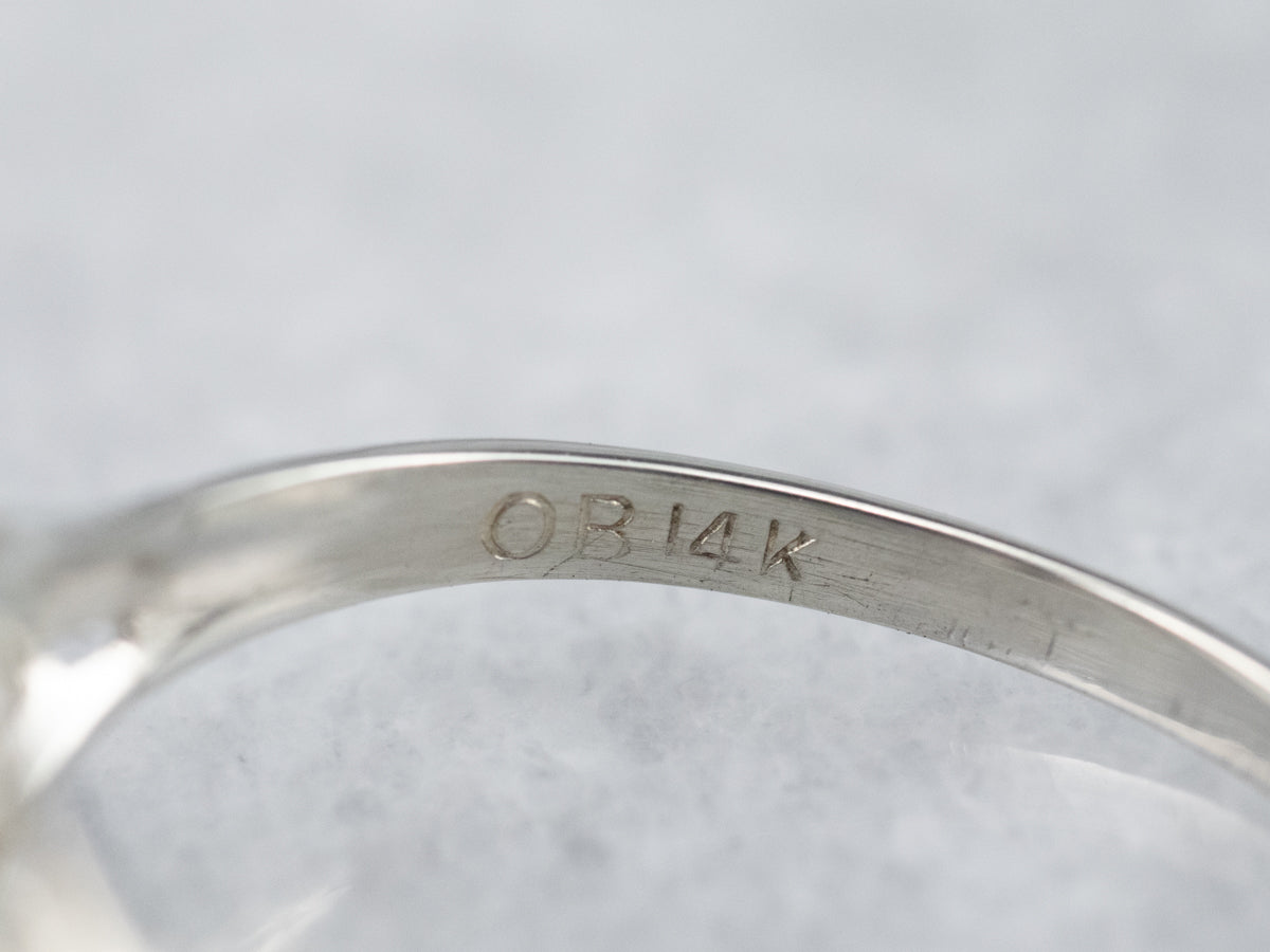 Metal: 14K White Gold Gem: Diamond .31 Carats, F in Color, VS2 in Clarity Gem Measurements: 4.3 mm, Round Ring Size: 3.50 Marks: “OB 14K” Stamped on the inside band