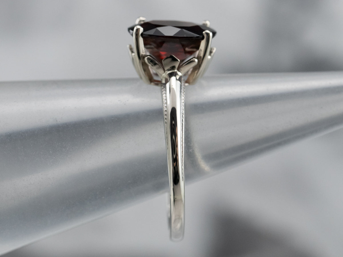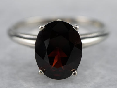 Metal: 14K White Gold Gem: Garnet 2.32 Carats Gem Measurements: 9.6 x 7.6 mm, Oval Ring Size: 6.75 Marks: “14K” Stamped on the inside band