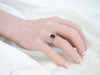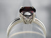 This ring features a simple and classically designed mounting, with a little bit of a twist! The structural pattern of the shoulders lends a sense of light and grace to the mounting. Shaped in a perfect oval cut, the deep red burgundy garnet in the center adds a lovely pop of color and also an interesting shape to a simple ring!