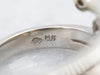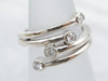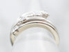 Absolutely stunning, this bypass-style ring would make a lovely gift, for an anniversary, a promising piece, or a birthstone for an April-born lady. The ring is simply made, with white gold forming the twinkling rows, and a sleek bezel setting holding these sparkling diamond gemstones!
