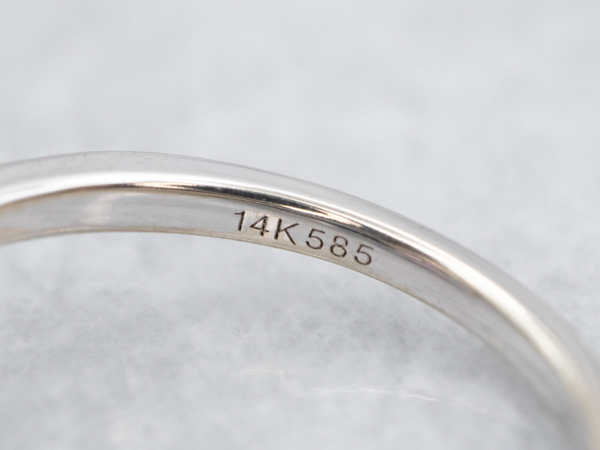 Metal: 14K White Gold Gem: Ruby .71 Carats Gem Measurements: 6.3 x 5.0 mm, Oval Accents: 28 Diamonds totaling .34 Carats, VVS in Clarity, G in Color Ring Size: 6.75 Marks: “14K 585” Stamped on the inside band